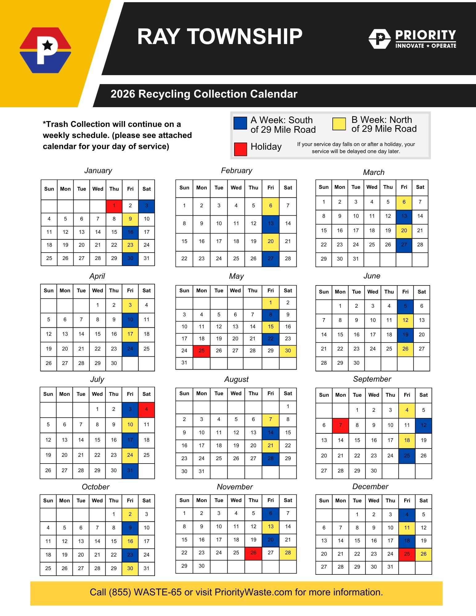 Priority Waste is proud to partner with Ray Township to provide top-quality waste and disposal services. We are committed to caring for the environment and the people of Ray Township, actively supporting local community education and sustainability initiatives.